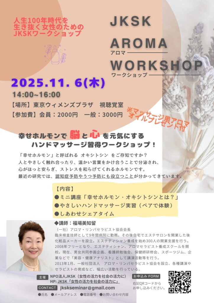 幸せホルモンで脳と心を元気にするハンドマッサージ習得ワークショップ