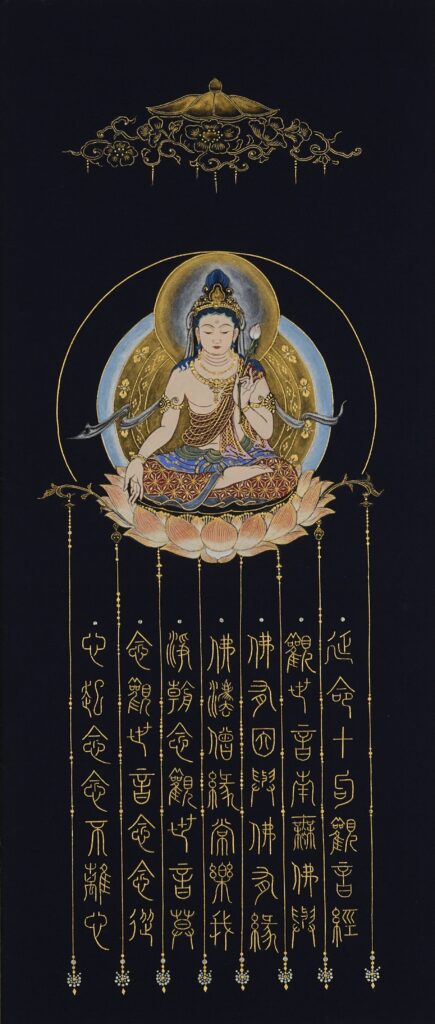 仏像への装飾のみならず、如意輪観音、大日如来、毘沙門天といった仏画の截金仕上げ、般若心経や延命十句観音経などの経を截金で描くことは、まさに心洗われる経験でもあります。麻紙、絹布、麻布、木板上と多様な素材の上に仏の姿や経を描いている自分の姿が、伸びのびと枝を広げ、しっかりと地に根を下ろした大樹となっていたら、これほど充実した人生はないでしょう。